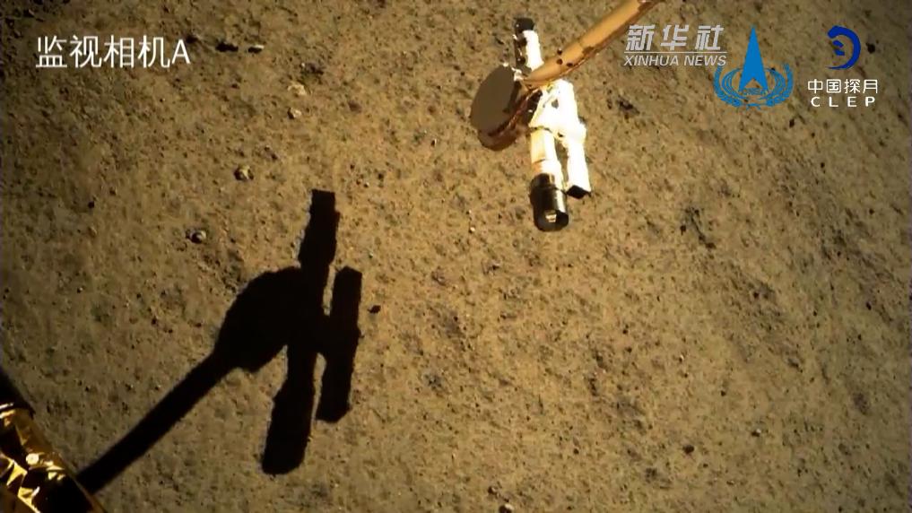 表取完成后,嫦娥六号着陆器携带的五星红旗在月球背面成功展开。这是中国首次在月球背面独立动态展示国旗。该国旗由新型复合材料和特殊工艺制作而成。